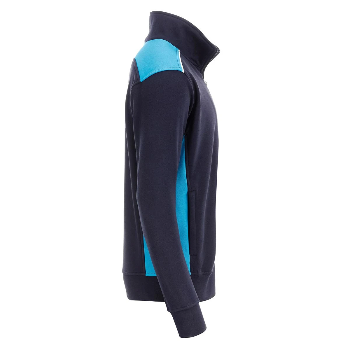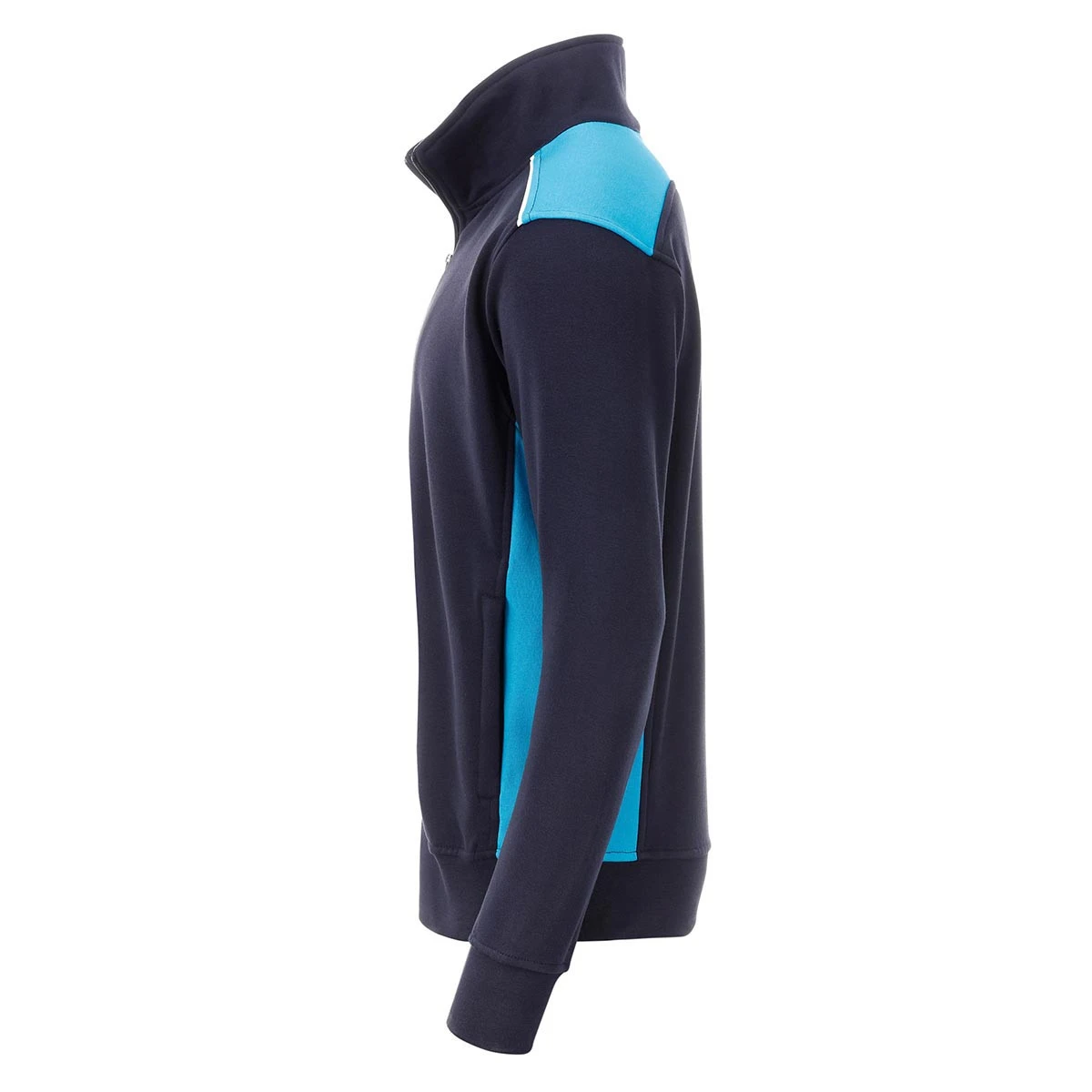 Besondere Highlights sind die kontrastfarbenen Einsätze an den Seiten und Schultern, die der Jacke einen sportlichen Look verleihen. Die Paspelierung an Schulter und Vorderteil sorgt zusätzlich für stilvolle Details.