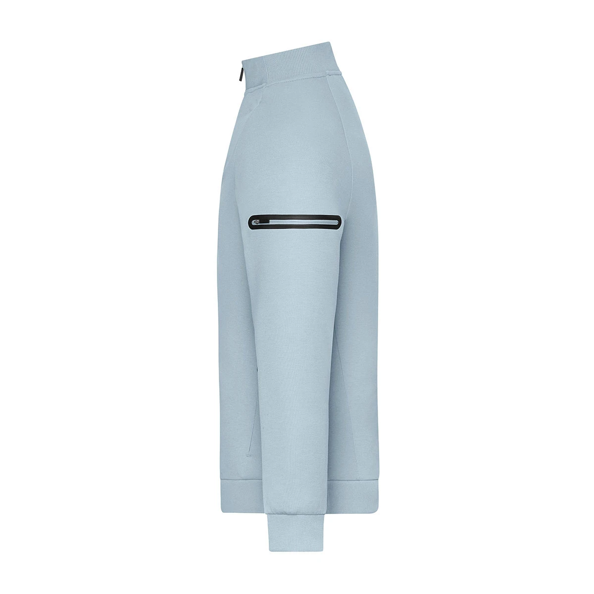 Zwei seitliche Reißverschlusstaschen bieten sicheren Stauraum für persönliche Gegenstände oder Arbeitsutensilien. Zusätzlich verfügt die Sweatjacke über eine Reißverschlusstasche auf dem linken Ärmel, die mit modischem Tape umrandet ist und einen modernen, technischen Akzent setzt. Bund und Armbündchen mit Elasthan sorgen für einen optimalen Sitz und einen sauberen, professionellen Look.