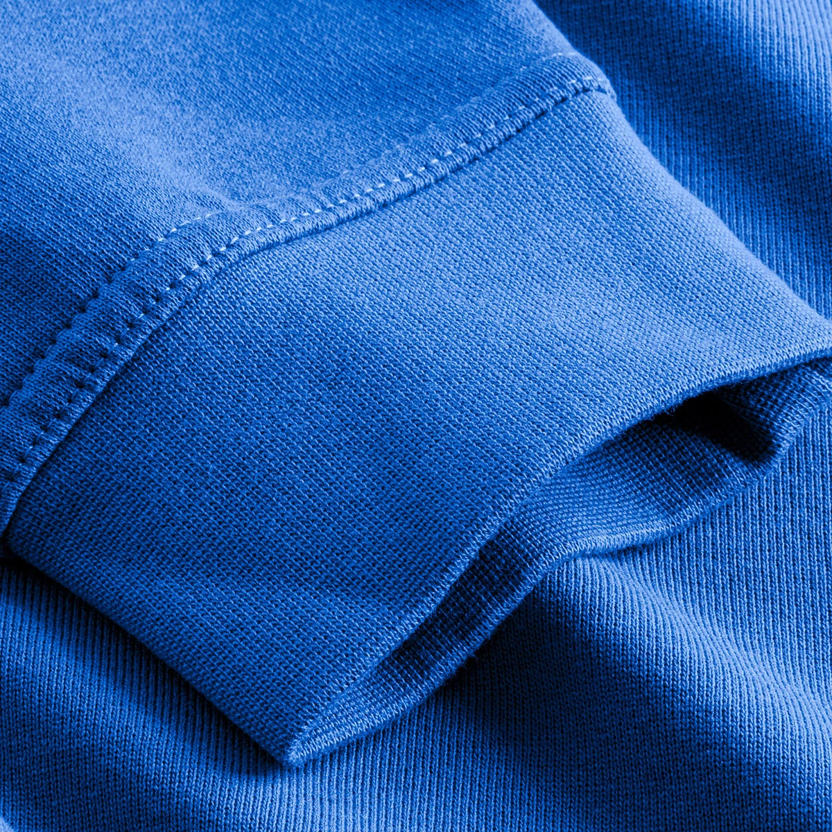 Gefertigt aus einem robusten Baumwoll-Polyester-Mix (60 % Baumwolle, 40 % Polyester) mit hochwertigem VORTEX® Garn, verbindet er Tragekomfort mit erhöhter Pillingresistenz und Strapazierfähigkeit. Das Material in French Terry Qualität mit einem Gewicht von 320 g/m² sorgt für ein angenehmes, atmungsaktives Tragegefühl, selbst bei täglichem, intensiven Einsatz.