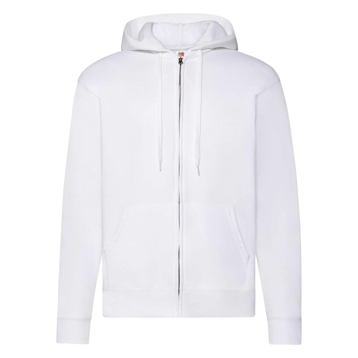 Der Fruit of the Loom Classic Hooded Sweat Jacket ist eine strapazierfähige und vielseitige Kapuzenjacke für Alltag, Freizeit und Workwear. Das Material aus 80 % Baumwolle und 20 % Polyester sorgt für ein angenehmes Tragegefühl dank der innen angerauten Oberfläche. Die doppellagige Kapuze mit Ton-in-Ton Kordel und der verdeckte Metall-Reißverschluss runden den klassischen Look ab. Strickbündchen an Ärmeln und Saum aus Baumwolle/Lycra® bieten optimale Passform und Haltbarkeit. Ideal für individuellen Druck und Stickerei.