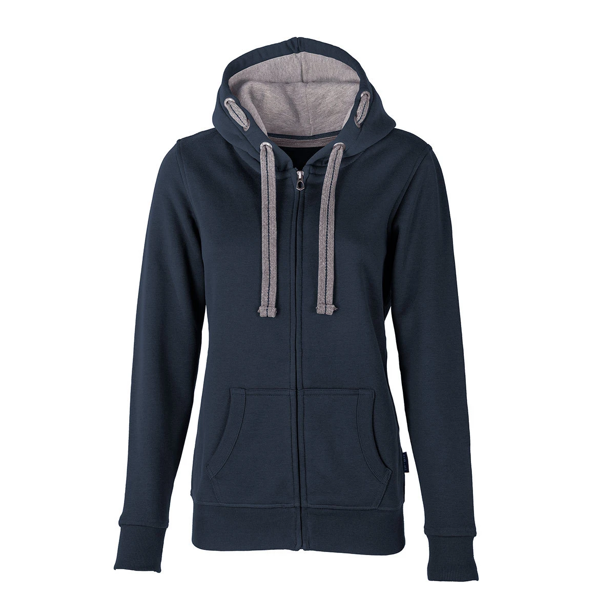 Die 2-farbige Kapuze mit Kontrastfutter und flacher, mittig bestickter Ton-in-Ton-Kordel sorgt für einen modernen, sportlichen Look. Je drei Metallösen im Antik-Look, ein robuster Reißverschluss mit HRM-Metallschieber und die breiten Rippstrickbündchen (2x2) an Ärmeln und Saum runden das Erscheinungsbild ab. Dank label-freiem Nacken mit neutralem Größenetikett lässt sich die Jacke ideal in eigene Markenwelten integrieren. Ein dezentes FAIR4ALL Flaglabel an der Seitennaht verweist auf verantwortungsvolle Textilproduktion.