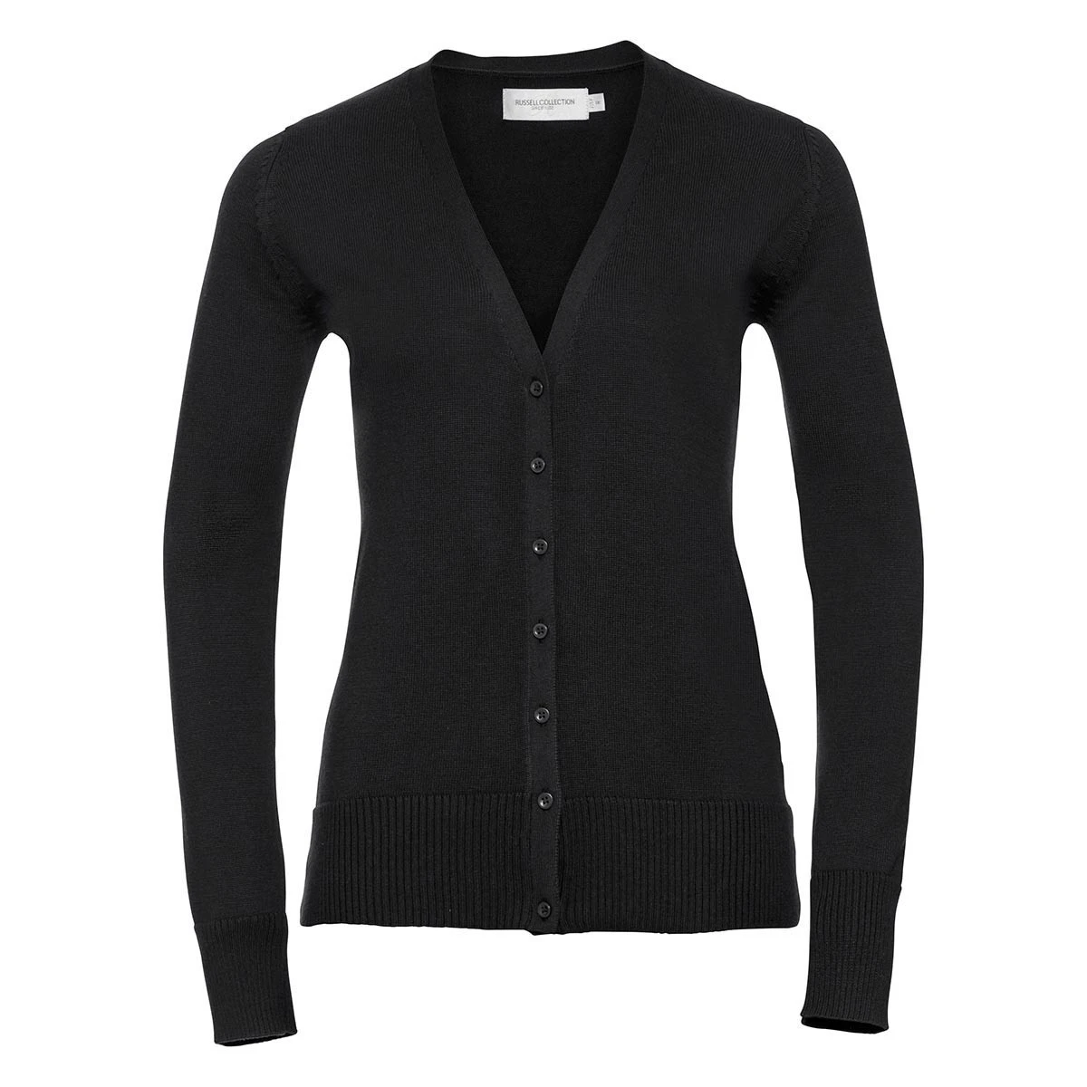 Die Russell Ladies V-Neck Knitted Cardigan – R-715F-0 ist die stilvolle Ergänzung für ein gepflegtes Outfit in Beruf, Empfang oder Eventbereich. Gefertigt aus dem hochwertigen CottonBlend™-Materialmix (50 % Baumwolle, 50 % Polyacryl) bietet sie mit 275 g/m² ein angenehmes Tragegefühl, Formbeständigkeit und eine edle Optik.