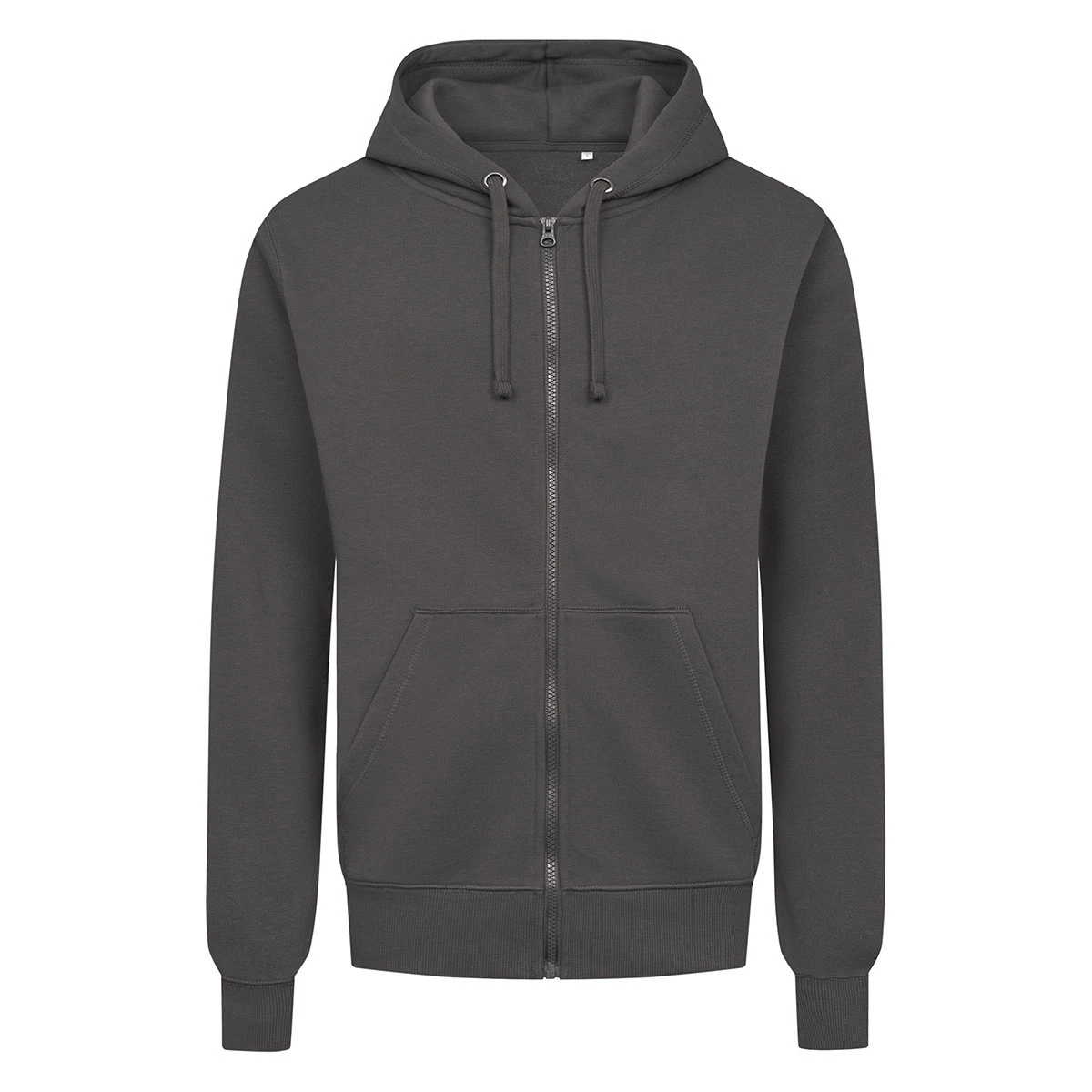 Die Sweatjacke besteht aus 70 % gekämmter Baumwolle und 30 % Polyester mit einem Stoffgewicht von 280 g/m² und einem angenehm angerauten Innenfutter, das Wärme spendet. Die zweilagige Kapuze sorgt für zusätzlichen Schutz, während elastische Rippstrickbündchen an Ärmeln und Bund eine optimale Passform garantieren.