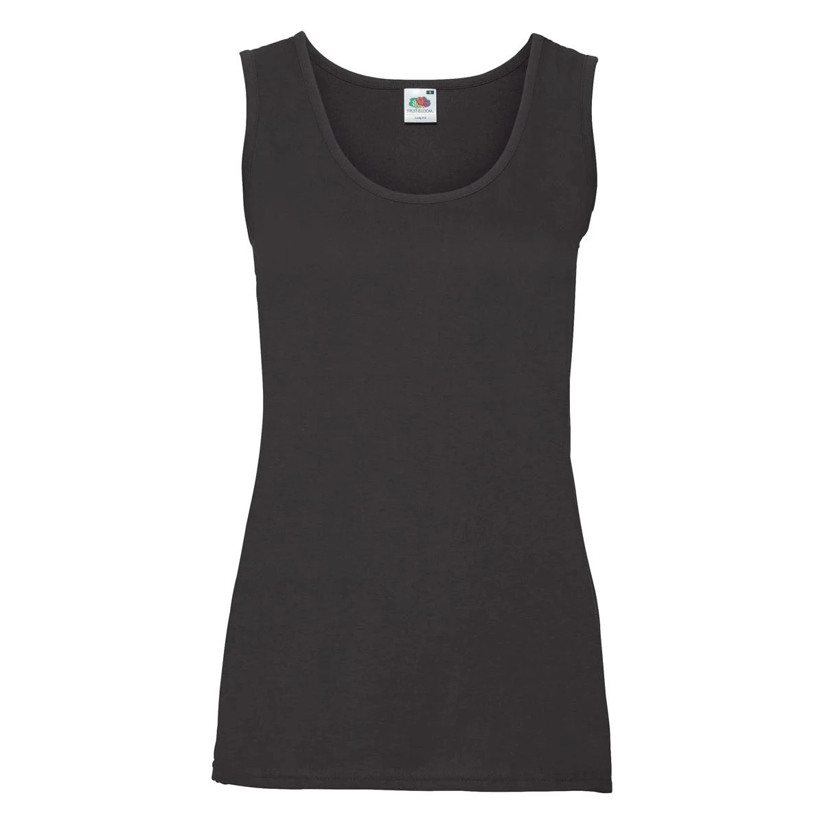 Das Ladies Valueweight Vest von Fruit of the Loom (Modell 61-376-0) ist ein klassisches Damen Tanktop aus 100 % Baumwolle mit einem Stoffgewicht von 165 g/m². Das leichte, aber dennoch robuste Material sorgt für ein angenehmes Tragegefühl, während die Seitennähte für eine gute Passform und Formstabilität sorgen.