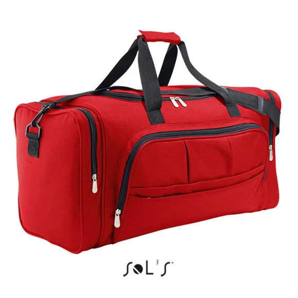 Der SOL'S Week-End ist eine praktische Reise- und Sporttasche mit einem großzügigen Volumen von etwa 48 Litern, ideal für längere Ausflüge, Sport oder den Alltag. Ausgestattet mit großen Reißverschlussfächern vorne und zusätzlichen Reißverschluss-Seitentaschen bietet sie viel Stauraum und eine übersichtliche Organisation. Die robusten Tragebügel aus Nylon sind mit komfortablen Griffen versehen, sodass der Transport auch bei voller Beladung angenehm bleibt. Diese Tasche eignet sich hervorragend für Veranstaltungen, Firmen oder als Merchandise-Artikel und bietet dank ihrer strapazierfähigen Verarbeitung eine langlebige Nutzungsmöglichkeit.