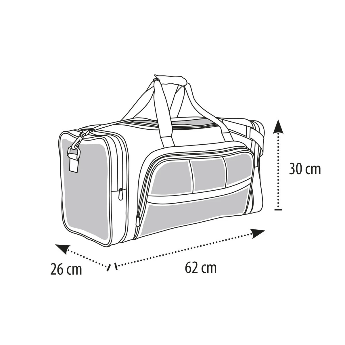 • großes, geräumiges Mittelfach mit Doppel-Reißverschluss rundum